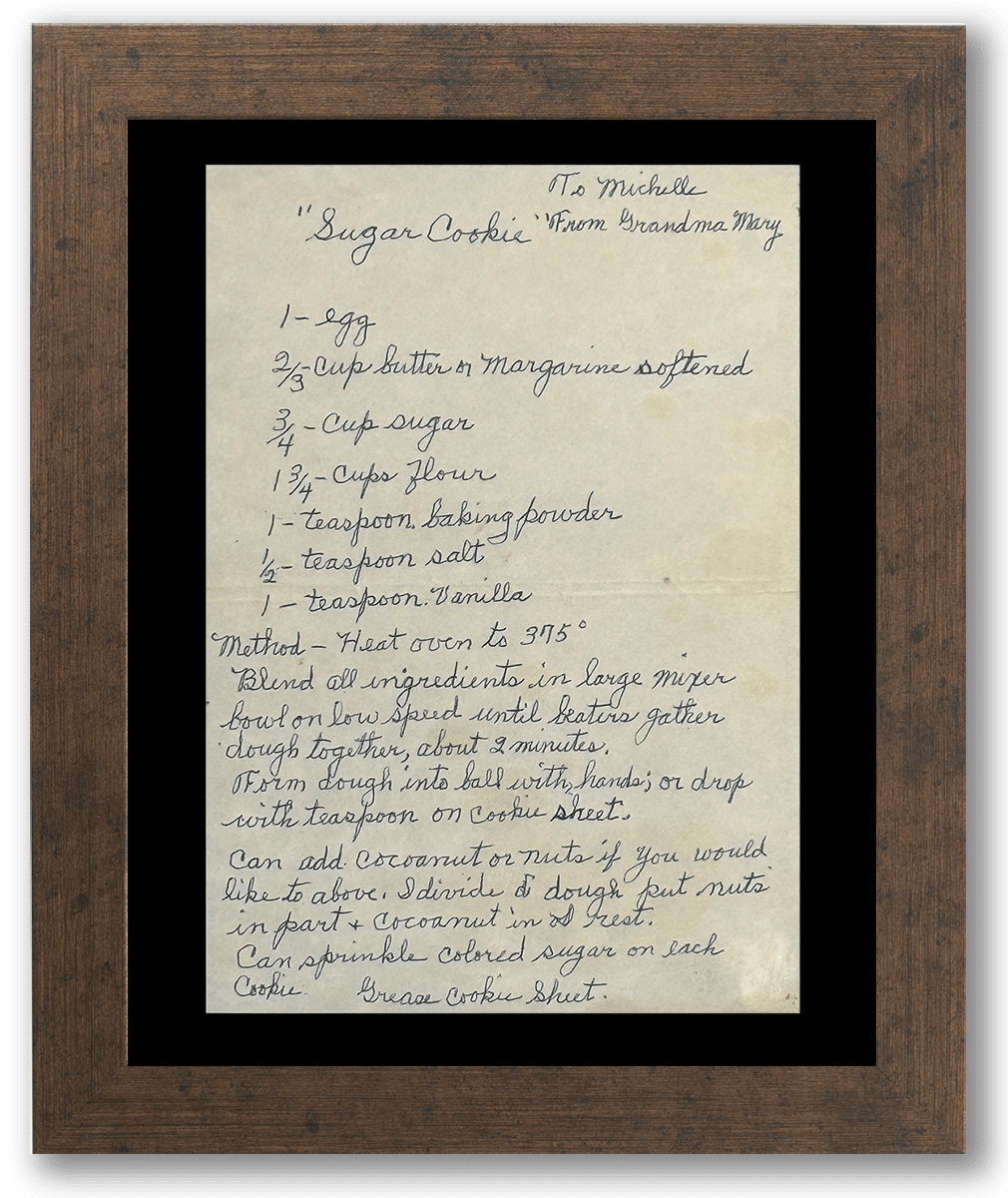 Michelle Roberts-Freeman has her grandma’s sugar cookie recipe framed in her kitchen. It’s a nod to time spent at Grandma’s house and a sweet way to keep both the memories and the cookies coming.