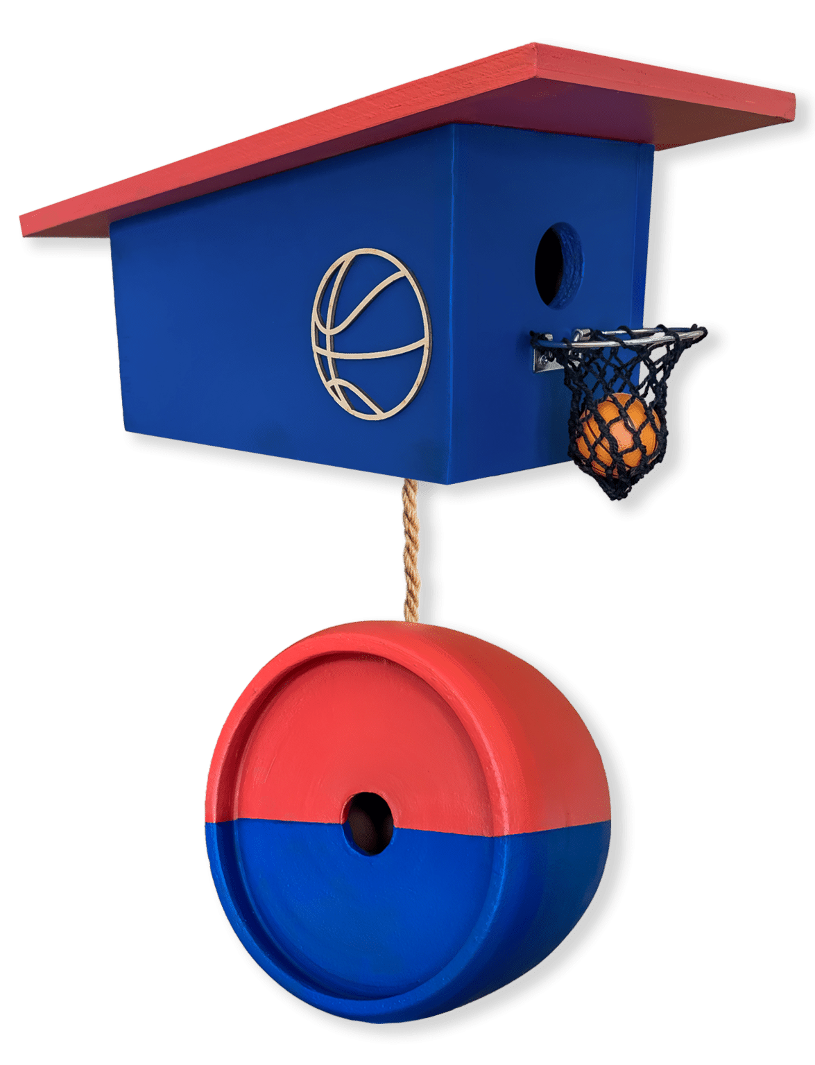 So in the spirit of bracket season, we’re giving away two crimson-and-blue-basketball-themed birdhouses. They’re perfect for birds looking to set up their own home court.